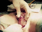 Bildoberfläche ausgestrahlte detailgetreue Darstellung einer Geschlechtsoperation