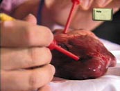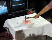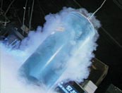 Das in einem flüssigen Sauerstoffbad schockgefrorene Herz wird zerbrochen
